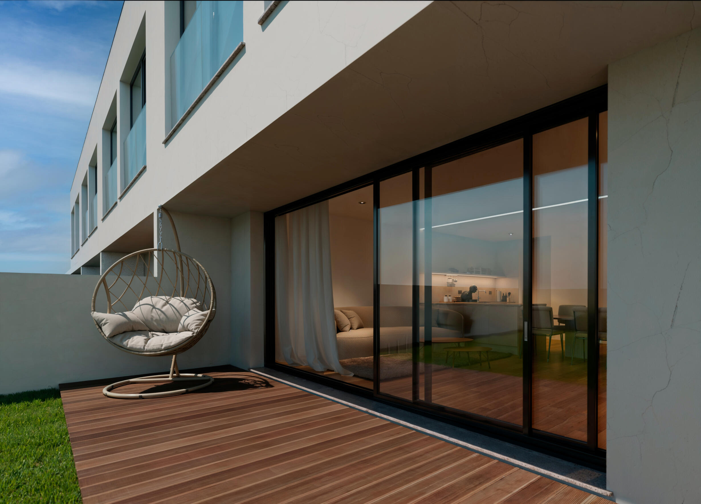 Projetadas para maximizar a luz natural, estas moradias beneficiam de uma exposição solar estratégica, culminando numa área de lazer traseira totalmente orientada a Sul com acabamentos em deck.O conforto interior é assegurado por uma engenharia de topo que combina ar condicionado em todas as divisões com o luxo do piso radiante no rés-do-chão e casas de banho.